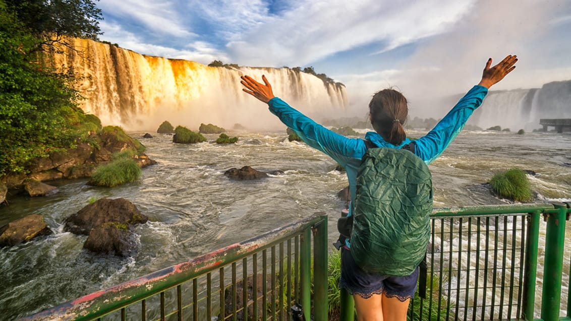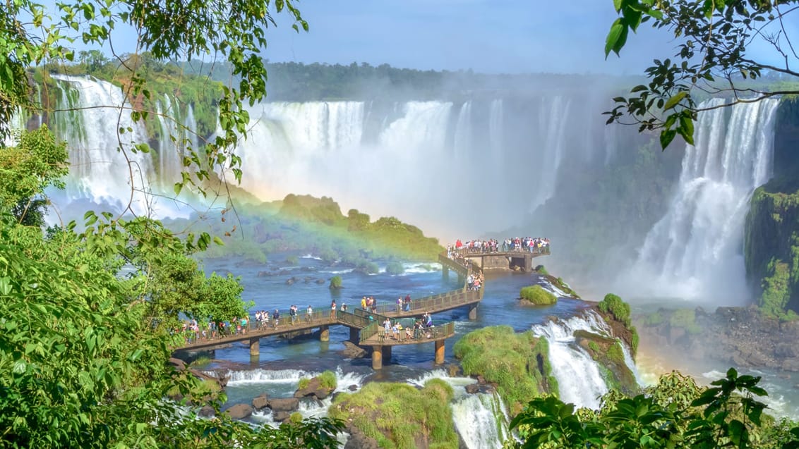 Från Rios urbana energi flyger du till gränsen mot Argentina, där det mäktiga Iguazúfallet väntar. Här störtar enorma vattenmassor ner genom den gröna regnskogen, och du får uppleva det imponerande vattenfallet från både den brasilianska och den argentinska sidan.