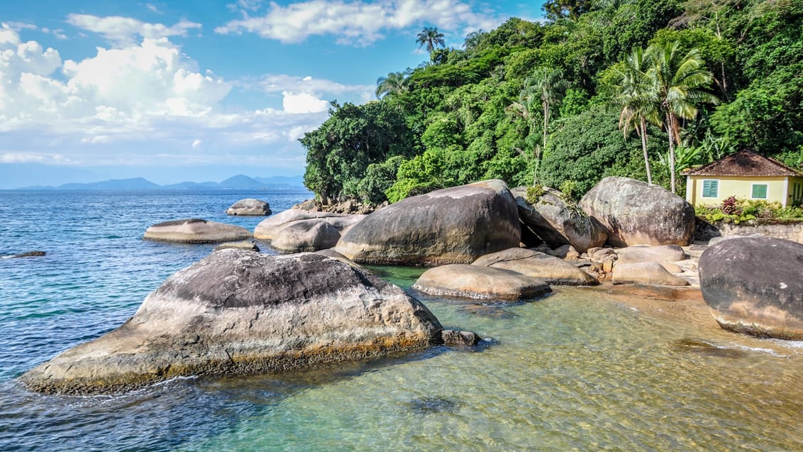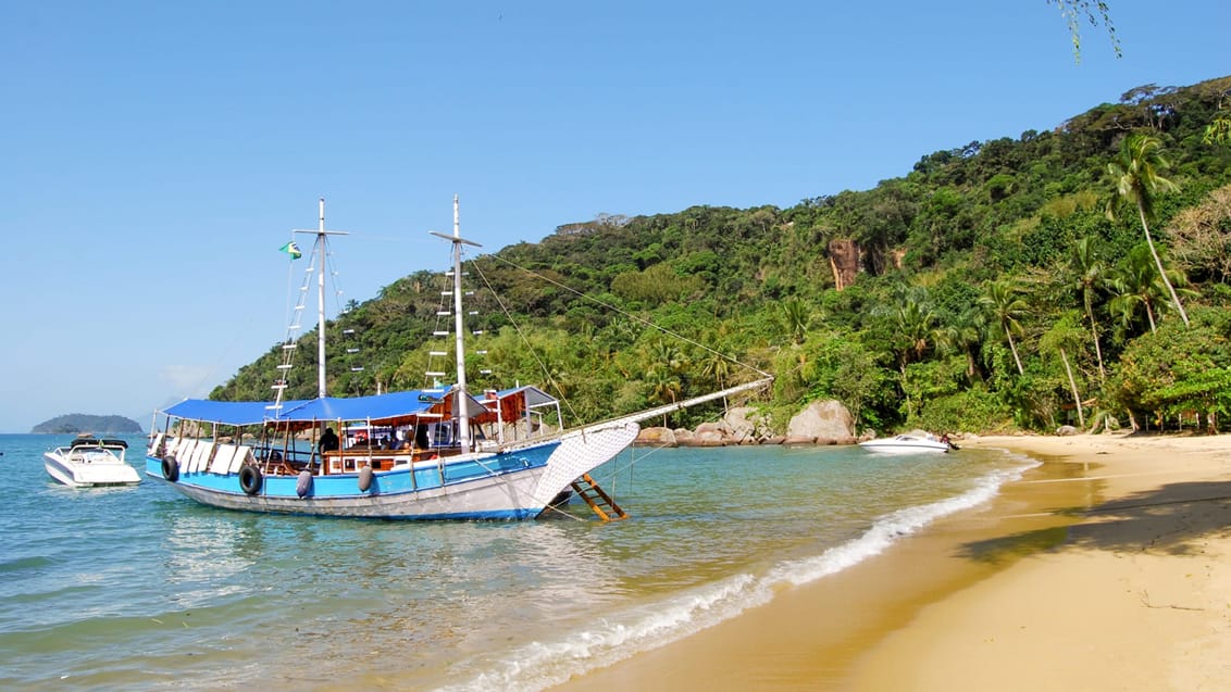 Resan avslutas på den frodiga ön Ilha Grande, där djungeln möter havet. Här väntar små bukter, bilfria stigar, regnskog och klart vatten – perfekt för snorkling, vandring och ren avkoppling på stranden.